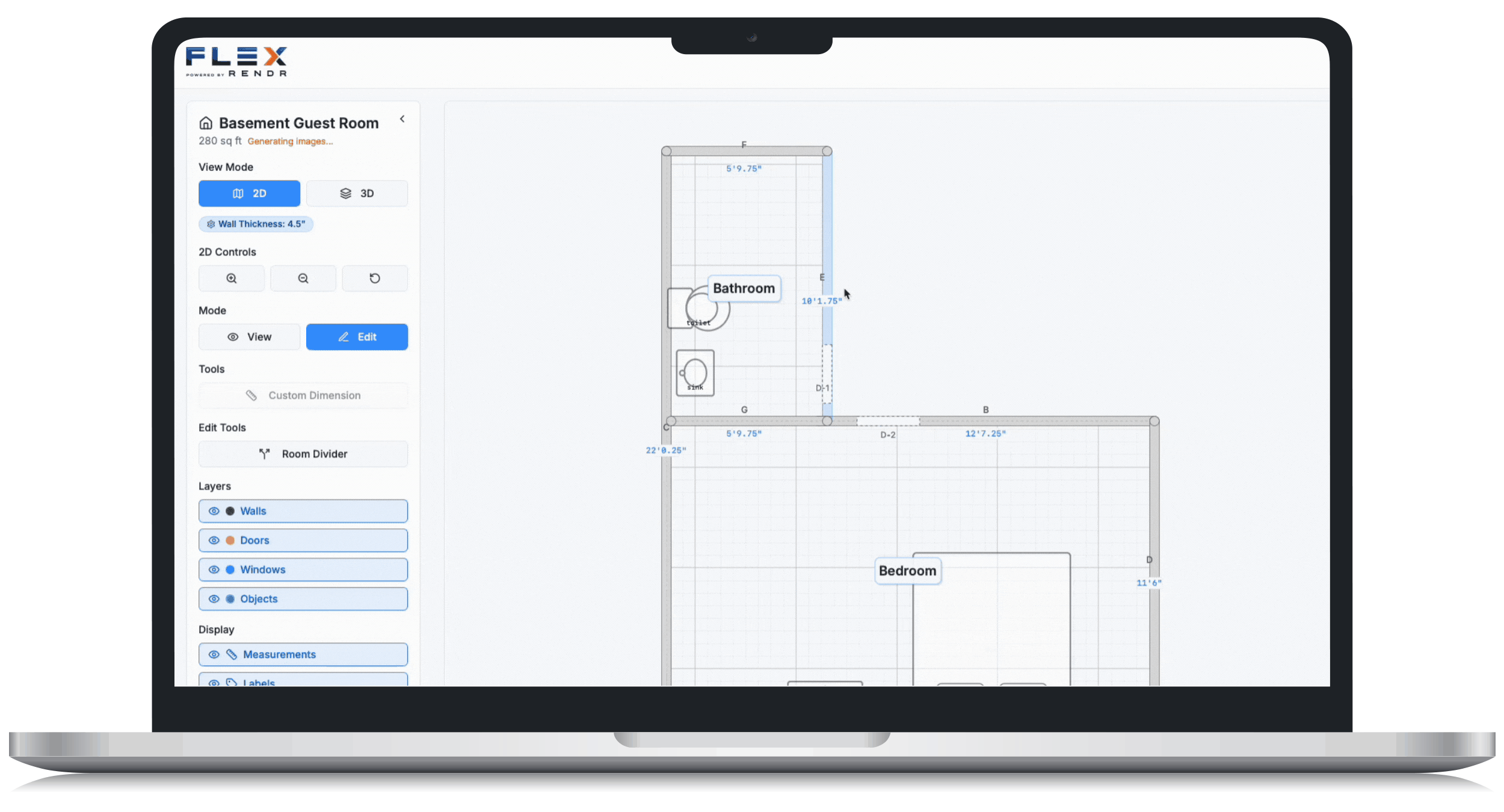 RENDR Flex is your digital editing powerhouse. Whether you need to make minor corrections to scans, adjust floor plans for accuracy, or fine-tune design elements for precise estimating—Flex handles it all without the hassle of traditional methods.